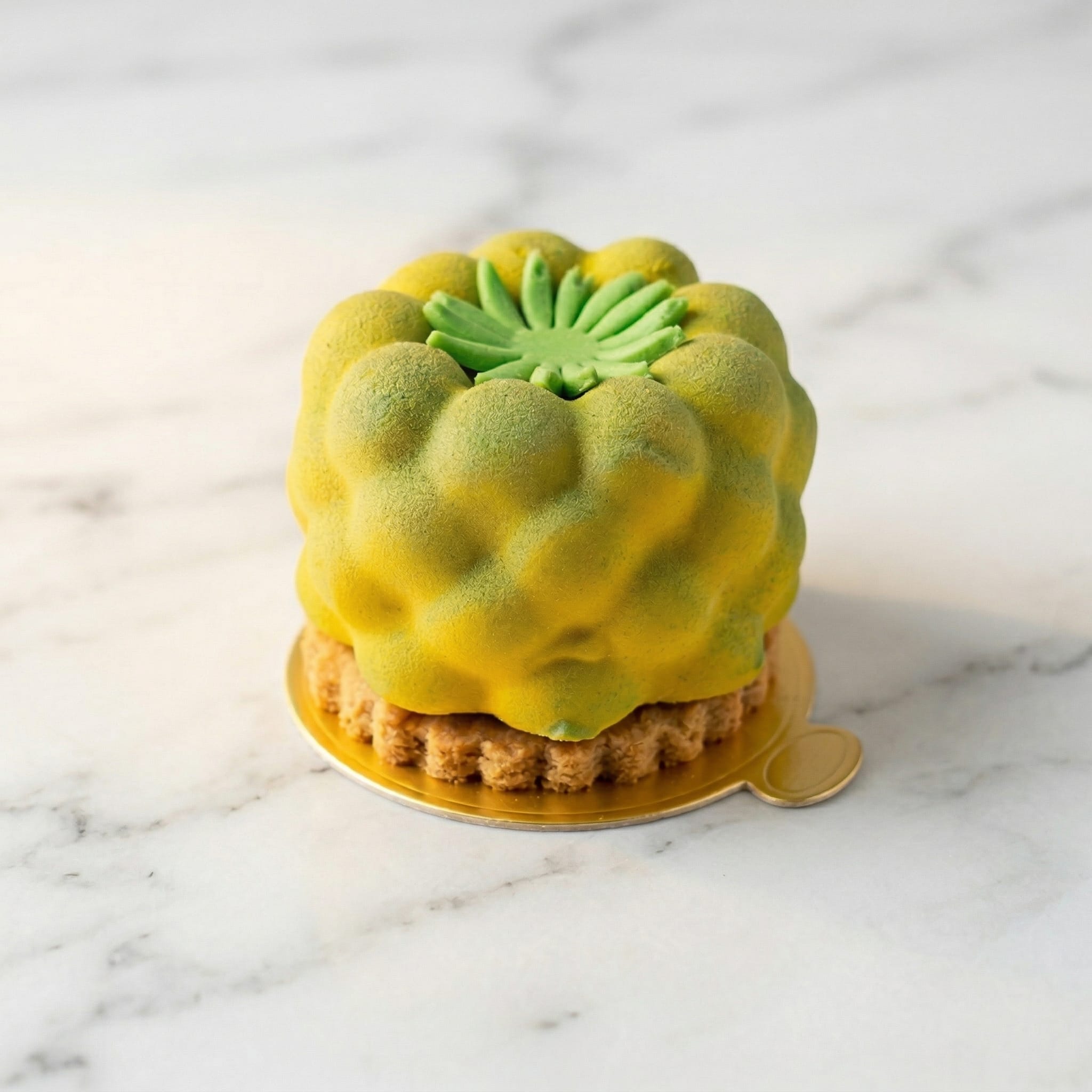 שכבות של מוס אננס, קונפי אננס וליים וציפוי שוקולד לבן שמאזן את החמיצות.